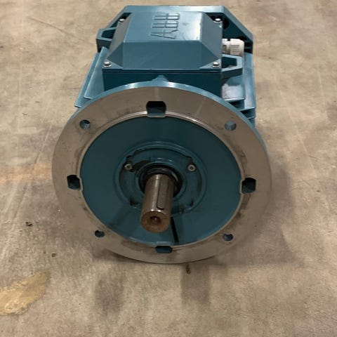 ABB Motors med gennemgående aksel. MT90L-F115-4. V 230 . Hz 50. r/min 1320. kW 0,9. A 6,0. Aksel ø. 14 mm yderst (længst fra motoren) og 15mm tættest på motoren, i den ene ende og 19 mm i den anden ende. Diagonal mål på monteringshuller ca. 114 mm.