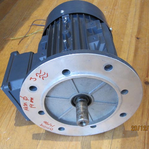 Grundfos MG71B4-19FT100-C elmotor. Aksel ø 19 mm. 1400-1420 r/min. 0,370 kW. Kan evt påmonteres en kondensator og køre på 230 V. Aksel længde ca 165 mm. Monteringsplade medfølger, se sidste billede.