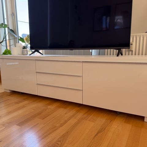Hvid skænk med 2 store skuffer og 2 små skuffer.