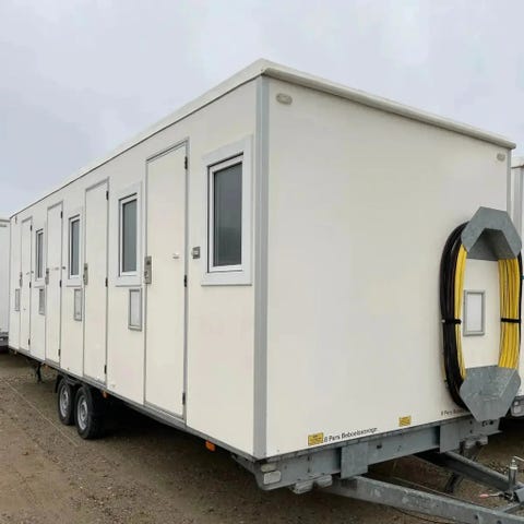 Denne beboelsesvogn er en praktisk og fleksibel løsning til midlertidig bolig, genhusning eller overnatning for medarbejdere i byggebranchen. Vognen er funktionelt indrettet med køkken, badeværelse og to separate soverum, hvilket sikrer høj komfort og praktiske opholdsbetingelser.