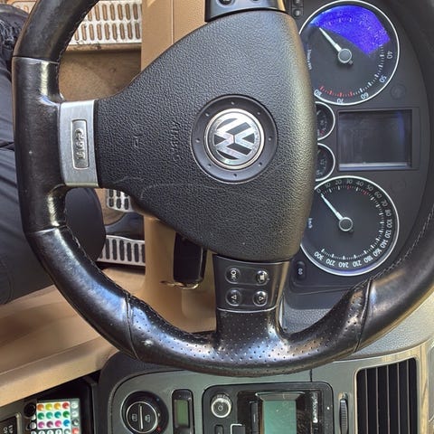 Forkofanger til Golf 5 GTI i grå med sort honeycomb gitter og rød kant rundt grillen. Har plads til nummerplade og tågelygter i siderne.