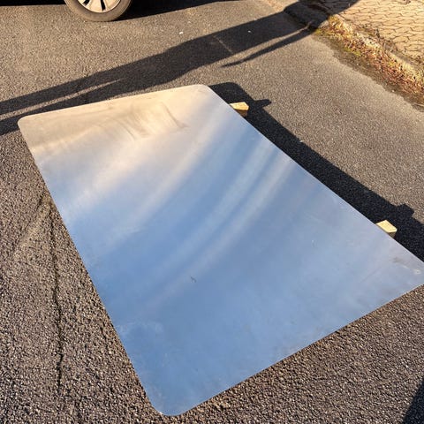 Der er malerpletter som kan fjernes med til flid. Masonit pladen har taget lidt skade, men bordet kan snildt bruges.