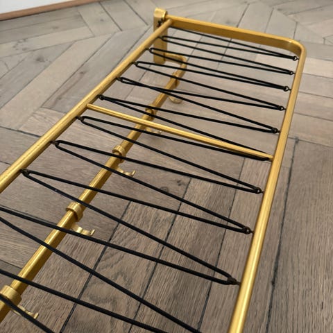 Messinghattehylde fra 1960'erne med profilerede stænger (81cm lang)