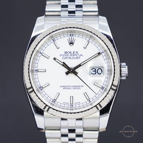 Rolex Datejust 116234. Det populære datejust i stål 36 mm med den skjulte lås. Denne model er med den meget sjældne perlemors skive. Uret fremstår i god stand og kommer med boks og certifikat fra 2014.