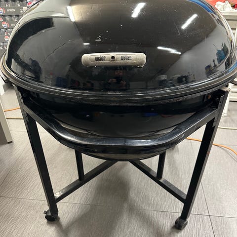 Sort kuglegrill med låg, indbygget termometer og luftspjæld i toppen. Står på ben med hjul og har håndtag i siden, så den er nem at flytte rundt på terrassen. P.s. den ser måske ikke helt ny ud men det er den jeg købte den da jeg troede jeg ville få brug for den men jeg har aldrig fået den brugt og kommer heller ikke til det så nu har jeg besluttet mig for at sætte den til salg.