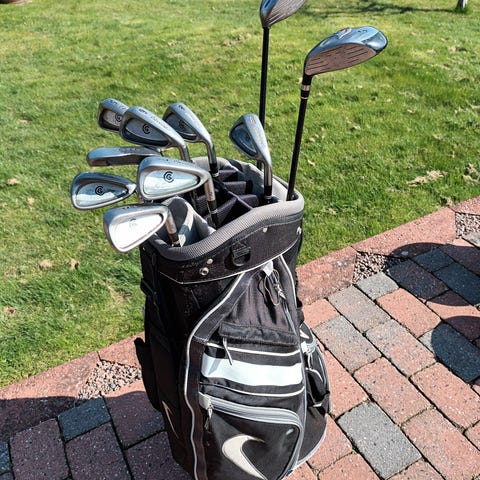 Cleveland jern samt 2 cobra drivere. Sættet sælges samlet, elvogn kan dog godt sælges for sig 1000kr bag og jern 1500kr