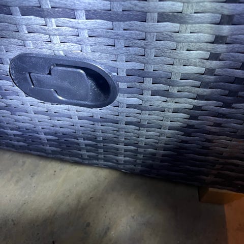 Helt nyt rattansæt med bænk, chaiselong og stol incl. grå hynder. Nypris 20.000 kr.