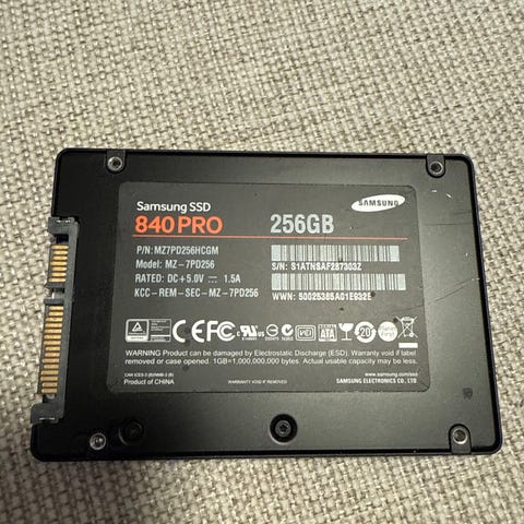 Samsung 840 EVO SSD med 250GB lagerplads. Fin som opgradering af computer for hurtigere opstart og programmer.