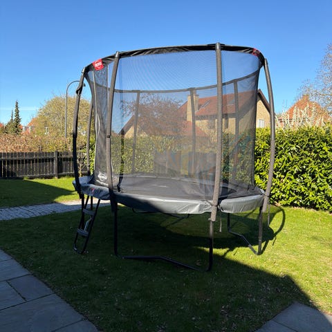 Extreme trampolin firkantet 366x244 cm. Inklusiv sikkerhedsnet og stige. Skal afhentes.