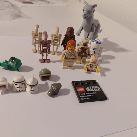 Blandet starwars dele til forskellige starwars sæt. En del halv dyre klodser i blandt. Stickers og print i blandt. Ingen figurer eller manualer.