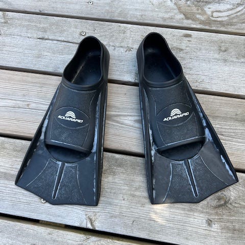 Scubapro finner i str XS-S i sort. Justerbar hælrem og åben hæl, lavet i blødt gummi/plast.