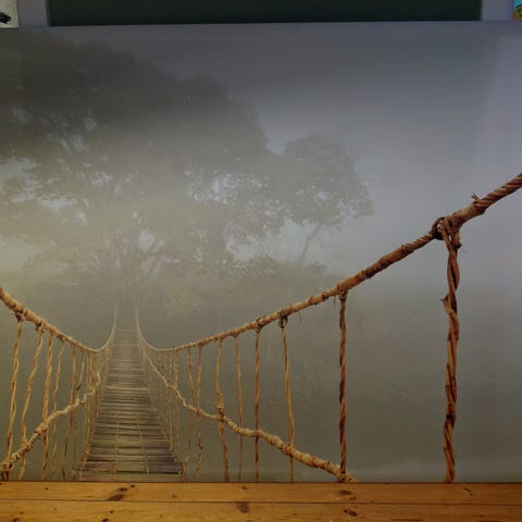 Stort vægbillede fra Ilva med motiv af en gammel træbro ud i en rolig sø. Dæmpede, lyse nuancer der passer godt ind i de fleste rum. (B: 180cm x H: 118cm)