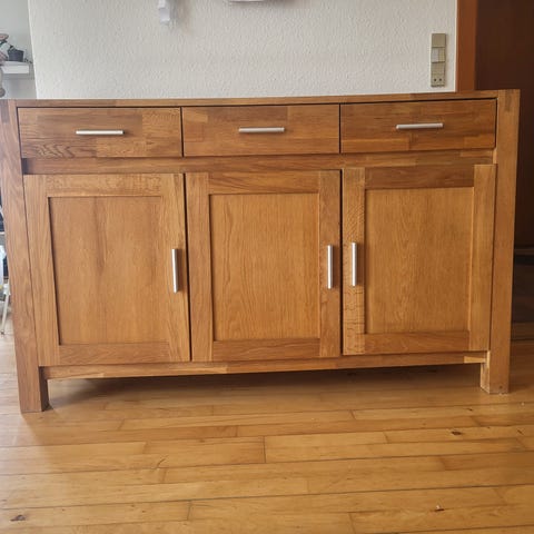 Meget flot og velholdt skænk i massiv mørkbejdset eg. Ny pris 9.995,- sælges billigt grundet flytning. Meget tung..bemærk IKKE et Ikeamøbel…
