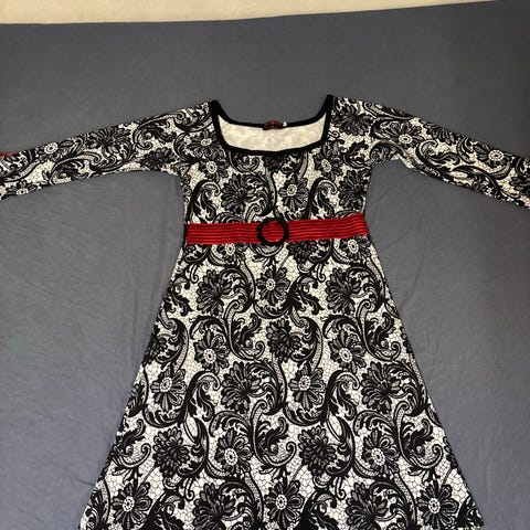 Lækker, rød-mønstret kjole fra Margot i kraftig kvalitet.