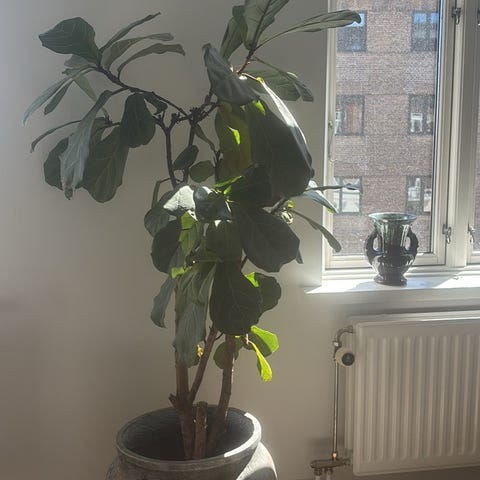 Stor violinfigen (Ficus lyrata) sælges, flot grøn med mange blade. Virkelig fin og stærk plante. Den blevet sat i spand i går, så den er klar til at flytte.