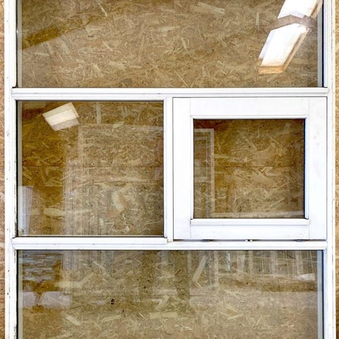 Tophængt vinduesparti i træ med 2 lags termoglas, karmdybde 18cm