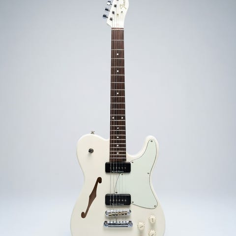limited-run Squier Tele Custom Electric Guitar features design elements from one of the most popular Telecasters ever. Agathis body, maple neck with maple fretboard, 25-1/2″ scale length, medium-jumbo frets, and 2 humbuckers with independent controls (vol/tone). 3 way switch. Includes gigbag