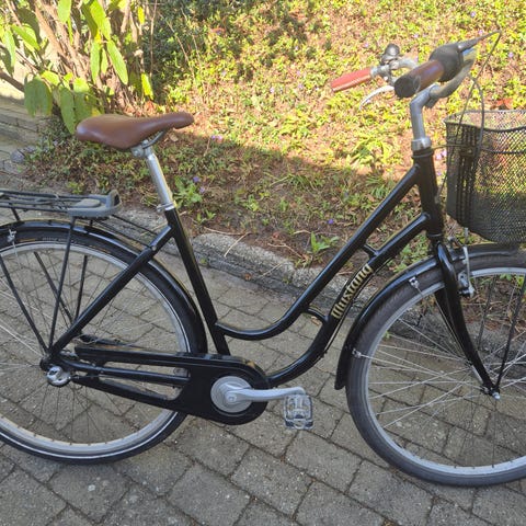 Brugt men fejlfri, kørerklar og velholdt. Ny kæde, håndtage og kurv. Hjul str. 28”, fod/håndbremser og Alu stel. Den kører som den skal. Lygter og fast montere lås følger med.