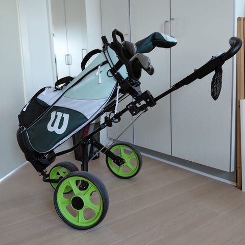 Velkørende golfvogn og golfbag i virkelig fin stand