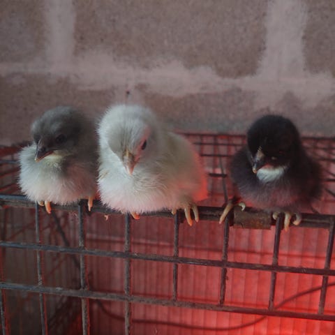 Daggamle kyllinger i flere forskellige racerene farver sælges fra lille hobbybesætning.