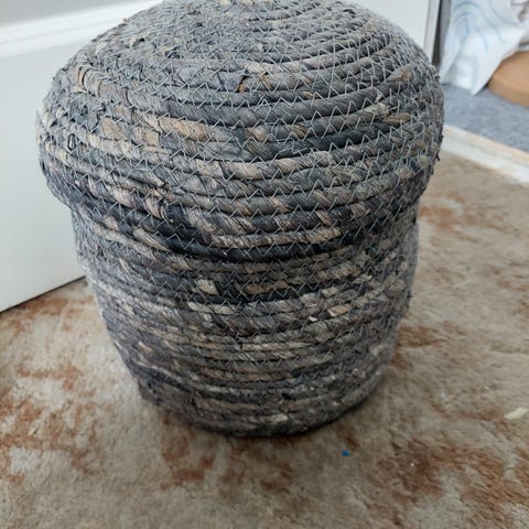 Lille kurv/pose. Perfekt til f.eks. Bankobrikker , Hjemmelavet, Lille kurv/pose. Kan vaskes. Perfekt til f.eks. Bankobrikker - og meget andet. Kan lukkes og åbnes helt.