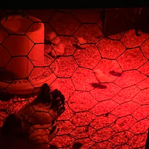 1 skrukhøne med 8 kyllinger født den 23/4