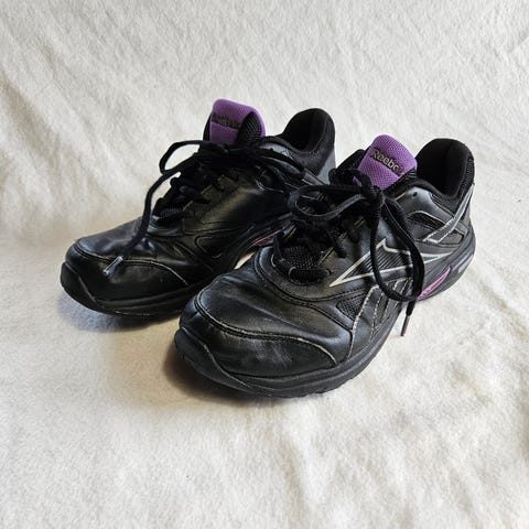 Nike løbesko i str 40,5 sorte med hvid sål og snørebånd. Let mesh-overdel og polstret hæl, indersål i kontrastfarve.