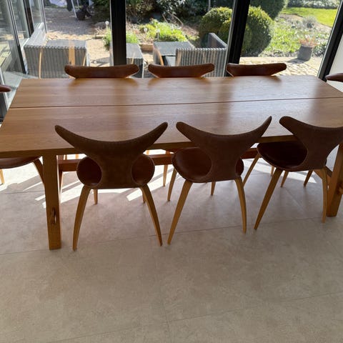 Stort spisebord 100x200 cm med 2 tillægsplader på hver 50 cm, så bordet kan blive 300 cm.
