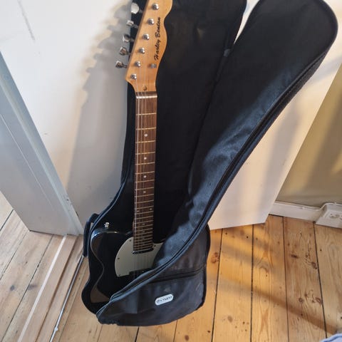 Elguitar i sort finish med klassisk design og tre single-coil pickups for dybe toner. Leveres med kabel og justerbar rem. Så er freden forbi, eller fantasien starter.- Bemærk at mail, chat og beskeder ikke besvares, og varen skal købes på knappen "Gå til varen". Efter reservering af varen har du 10 dage til at afhente den i den butik, varen er på lager i.