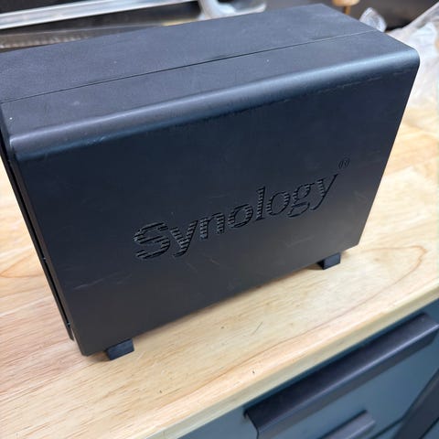 Synology router i sort med flere eksterne antenner. Har strømforsyning og står i original papkasse.