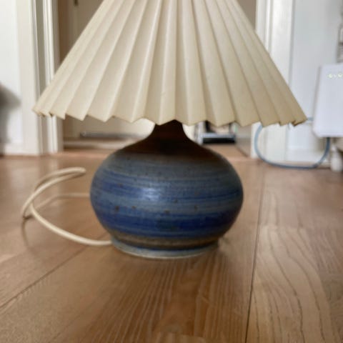 En sød lampe fra Marco Stentøj fra Mors. Lampen er udført i begyndelsen af 1970'erne. Det er en lille, robust keramiklampe i jordnære farver og deres karakteristiske horisontale riller. Standen er perfekt. Lampen er signeret.