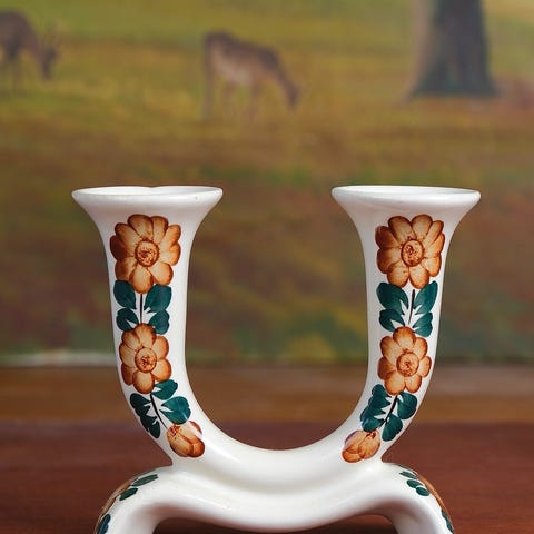 Sød lille lysestage i polsk fajanse med et skønt blomstermotiv🤩🤎🧡🤎
