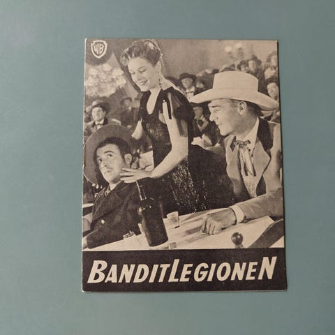 Ældre filmprogram med billeder, synopsis, liste med medvirkende skuespillere , instruktør og producentselskab.