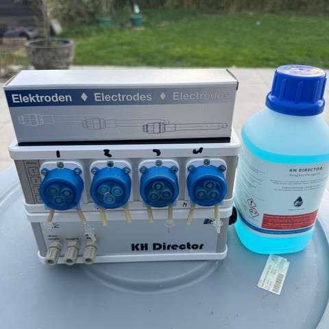 GHL ProfiLux 4e controller i sort med display og knapper på fronten. Har flere tilslutninger bagpå til sensorer, netværk og USB.