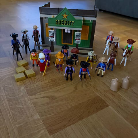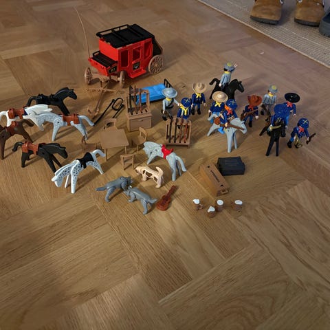 Stor Playmobil western indianerlejr med mange figurer, heste og to tipitelte. Der følger også klipper, dyr og forskellige små dele som kano, båre og bålplads med.