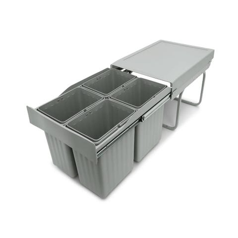 De to udtræksstel til affaldssortering har produktkode 204.228.53 og de to plastspande har hhv. produktkode 803.980.58 og 804.338.82. Sælges udelukkende grundet flytning og ny indretning i køkkenet.
