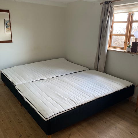Stor seng med tilhørende semgegavl, med eksklusiv topmadras som former sig efter kroppen. Man sover rigtig godt i den. Sælges pga. flytning. Mål kommer snarest. Afhentes i Helsinge