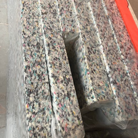 Sengegavl i gråt fløjlsstof. Passer til en 140 cm seng. I god stand.