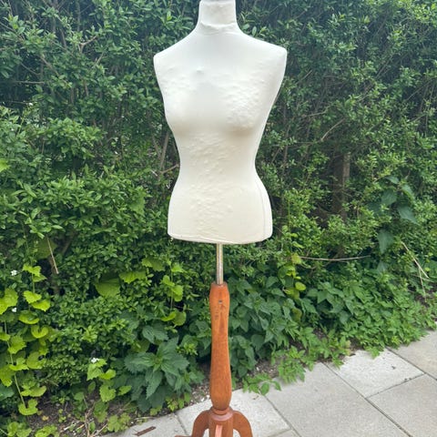 Skrædderbuste på metalstativ med justerbare skiver i siden. God til at arbejde med kjoler, jakker og andet tøj derhjemme.