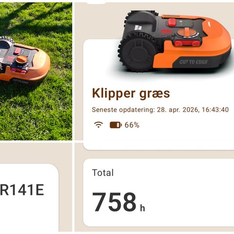 Worx Landroid WR141E robotplæneklipper sælges, den kan styres via app og kører automatisk på plænen. Har tydelige knapper på toppen og store hjul, så den nemt kommer rundt i græsset.