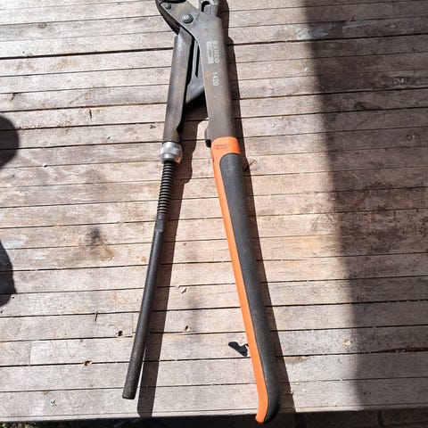 T-nøgle til udendørs stophane, rørnøgle med firkantet hul på ca. 18x18 mm.