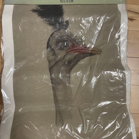 Ophæng med 'Struds' på lærred, Der er her tale om et flot ophæng med 'Strudsf' på lærred.