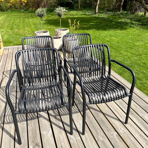 8 havestole fra Ilva i serien Click fra Ilva i farven sort. Prisen for alle havestole er 2000 kr. Stolene kan stables. Armlæn trænger til rensning ellers fin stand. Skal afhentes i Vanløse.