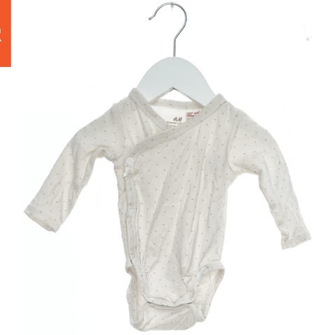 Den fineste, cremefarvede body med små brune prikker og søde flæser. Den har trykknapper ved skulderen og forneden.