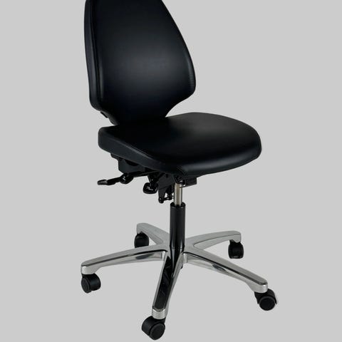 Stolen er udformet som en sadelstol, med polstret sædeflade, der tilskynder en åben hoftevinkel og en oprejst ryg. Den højdejusterbare gaslift gør det nemt at tilpasse stolen til forskellige arbejdsstationer, mens det stabile femstjernede kryds med hjul sikrer høj mobilitet. Den kompakte form gør modellen ideel til klinikker, laboratorier, detailmiljøer eller kontorer, hvor man ofte skifter position. RH Support-serien er kendt for sin funktionelle enkelhed og langvarige komfort – et tidløst valg inden for ergonomiske arbejdsstole.