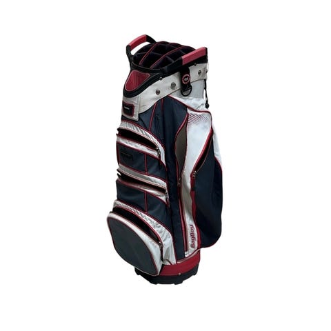 Denne Sun Mountain H2NO Cart golftaske giver dig funktion og tryghed på banen – selv når regnen tager fat. Tasken er slidt og misfarvet, men stadig fuldt brugbar og klar til en ny runde.