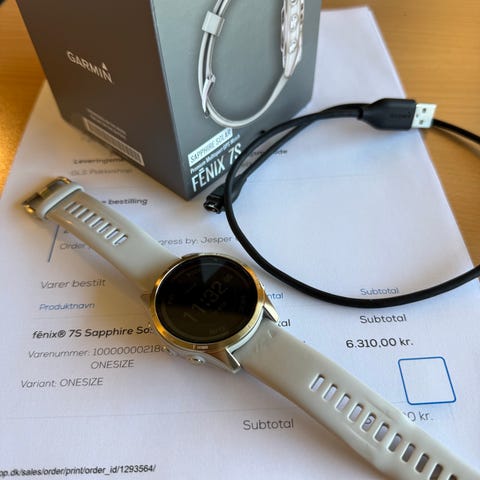 Der medfølger også et nyt sort Garmin rem samt en oplader.