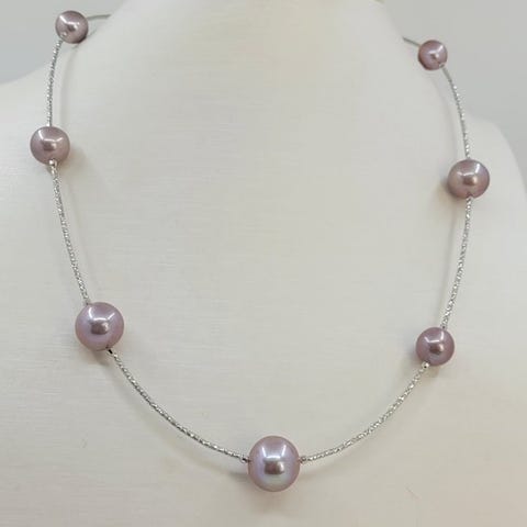 Fremstillet i Sydøstasien blev perlene håndudvalgt for deres naturlige hvide, lyserøde og lilla farver og klare glans og ser fantastiske ud sammen med det tri-kolorerede guldbånd.