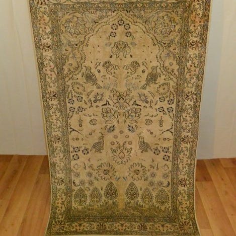 Højklasse og ekstraordinær skønhed, originalt og eksklusivt Kashmir-tæppe håndvævet og lavet af den højeste kvalitet silke på bomuld; blomsterkonturerne fremhæves og fyldes med silketråd med en kortklippet, skinnende fleece. Tæppet er forsynet med et certifikat for kvalitet og oprindelse. Orientalsk design — et imponerende medaillon omgivet af vidunderlige blomsterarrangementer og farver i harmonisk kontrast gør det meget smukt og værdigt, når det udfoldes.
