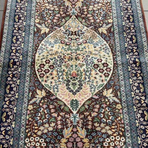 - Smukt figuralt silketæppe i Kayseri, silke på silke.